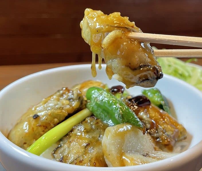 「牡蠣丼セット(サラダ・ミニラーメン付き)」は、年間を通してのご飯ものの中で、最もご注文数が多く、「中華レストラン とらの子」の看板メニュー「酸辣湯麺(スワンラータンメン)」に次ぐ人気商品となります。